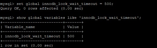 mysql> show global variables like 'innoab_lock_wait_timeout';