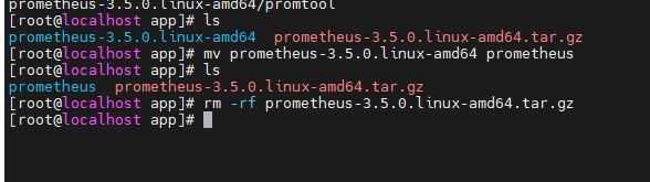 mv prometheus-3.5.0.linux-amd64 prometheus rm -rf prometheus-3.5.0.linux-amd64.tar.gz