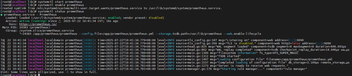 systemctl enable prometheus systemctl start prometheus systemctl status prometheus
