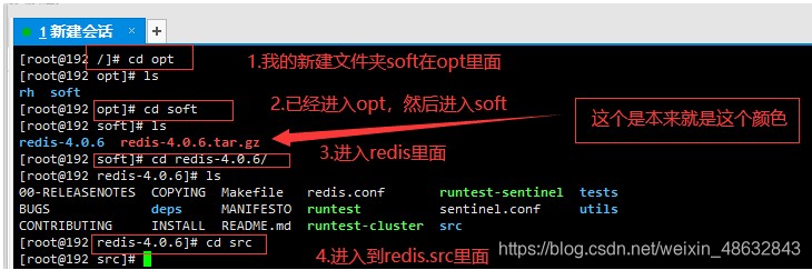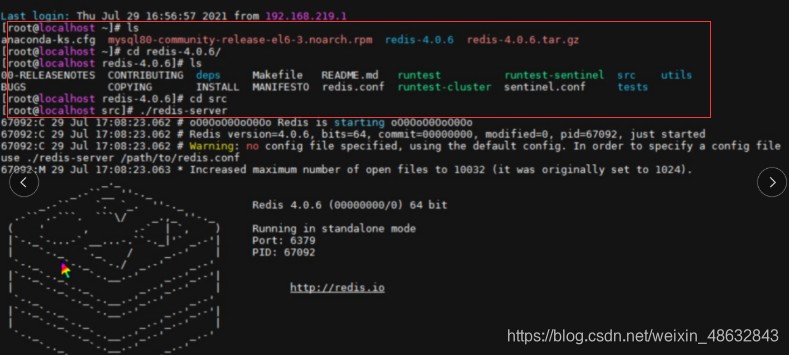 后台进程启动搞完之后,以后开启redis后,就可以去进行其他操作了(在src目录下 ./redis-server /opt/soft/redis-4.0.6/redis.conf启动redis)。