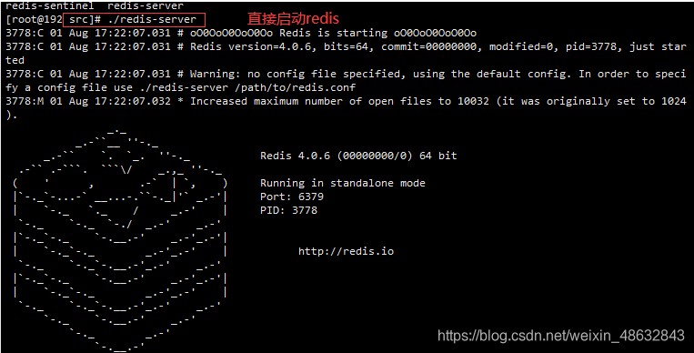 进入src里面之后,直接输入 ./redis-server即可开启Redis。