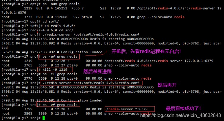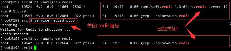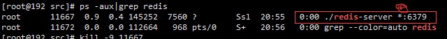 先用ps -aux | grep redis查看redis进程。就会显示对应的redis服务信息,通过redis进程标号可以杀死进程。