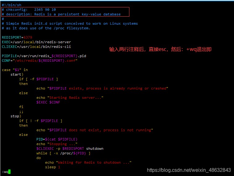 (注释意思是:redis服务必须在运行级2.3.4.5下被启动或关闭,启动的优先级是90,关闭的优先级是10)
