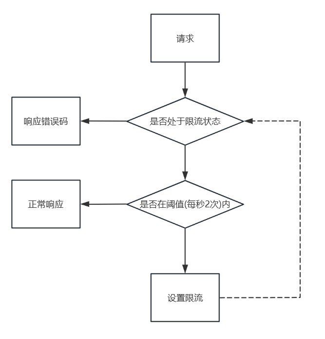 需求:系统每秒限流2个请求,如果超过阈值(每秒2个请求),则系统限制10秒内,不能被访问