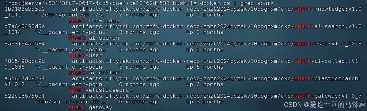 | 7815490ddc9d | artifacts.iflytek.com/znfw-docker-repo/znzt2024qyzskv10cpg hxm/ckb/spark-ai-collect:V1.0_1036 | spark-ai-collect |