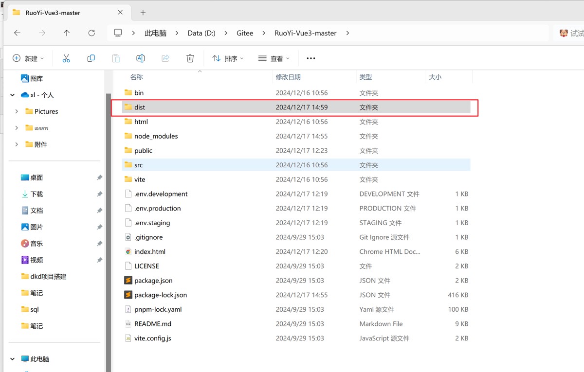 下图为 dist 所在文件夹(在项目文件夹里面):