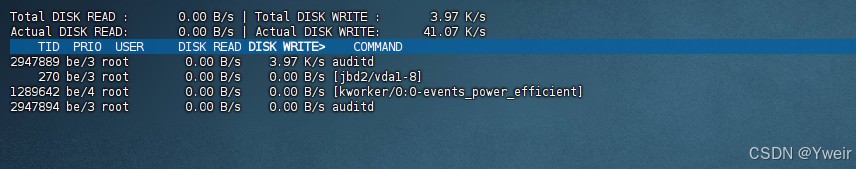 yum install -y iotop iotop -o -d 3每3秒刷新下各个进程磁盘IO情况
