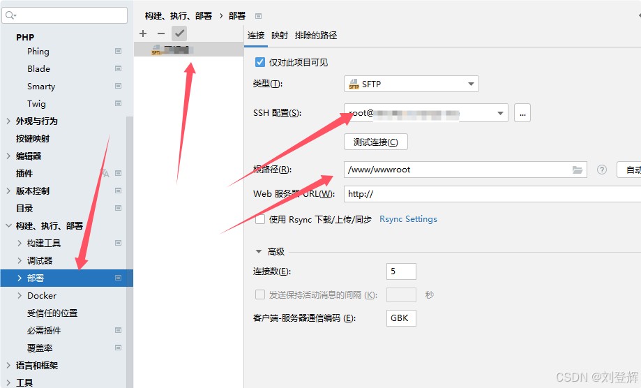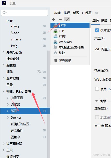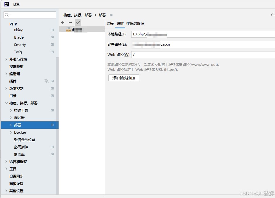 1.添加服务器信息,设置连接、映射目录