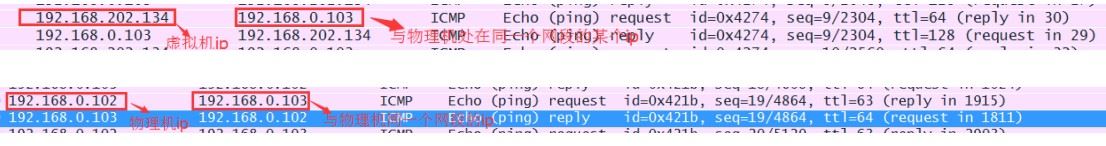 例如:192.168.202.134是虚拟机的ip地址,访问跟物理机同一个网段的ip:192.168.0.103时,将nat为物理机自己的ip地址:192.168.0.102