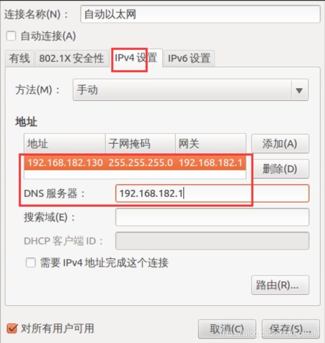 如果是静态获取ip地址,则ip地址需要在上面的dhcp地址池范围内,且网关为物理机vmnet1的ip地址, dns也是物理机vmnet1的ip地址