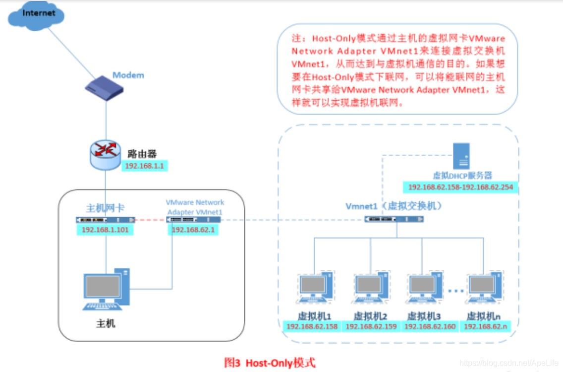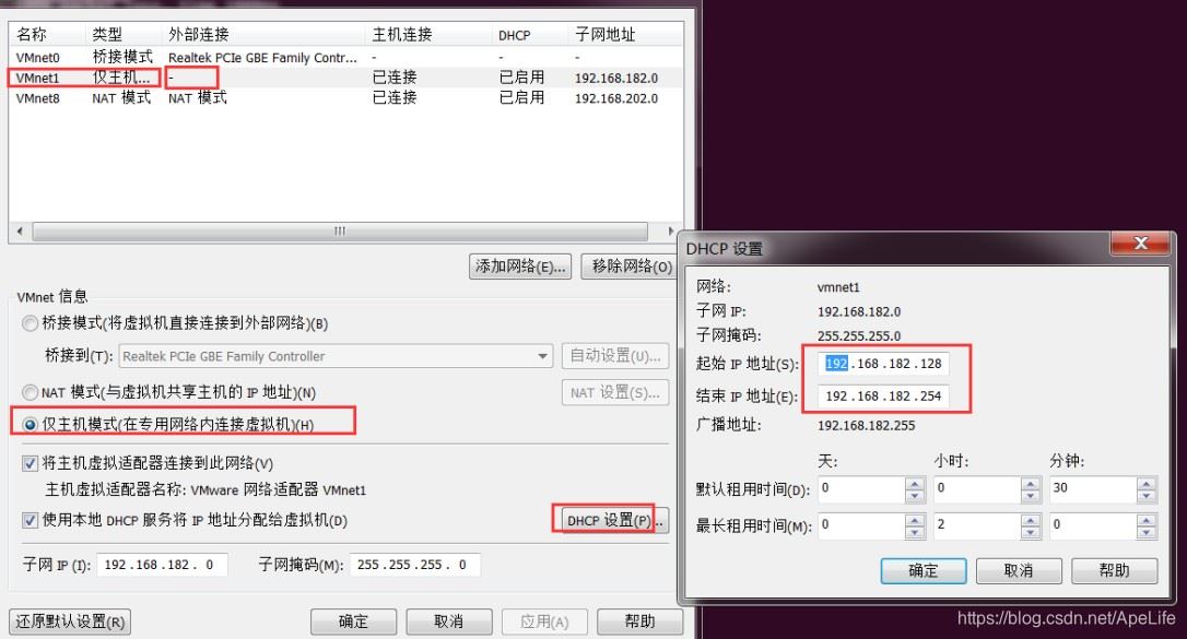 所谓的host模式,也就是虚拟机只能与物理机通信,不能与外网通信。通常用于物理机与虚拟机之间进行资源共享。此时物理机会虚拟出一个网卡vmnet1。例如物理机上vmnet1的ip地址:192.168.182.1就是虚拟机的网关。 虚拟机与物理中的的vmnet1处于同一个网段,但与物理机真实物理网卡ip则不在同一个网段。物理机上的vmnet1是物理机上的一个虚拟网卡,用于主机模式下虚拟机上的网卡与物理机相连