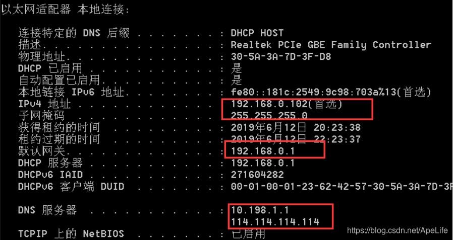 这是window 7物理机的ip信息。可以看出虚拟机与宿主机处于同一个网络。