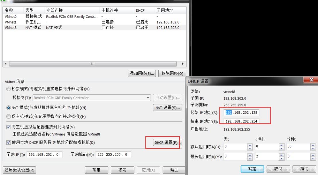 配置好dhcp地址池的范围,保持默认就可以了。虚拟机将从这个地址池获取一个ip地址
