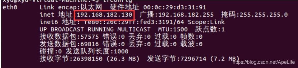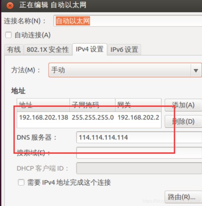 ubuntu通过dhcp方式获取ip地址,此时获取到的ip地址就是上面配置的dhcp地址池中的一个