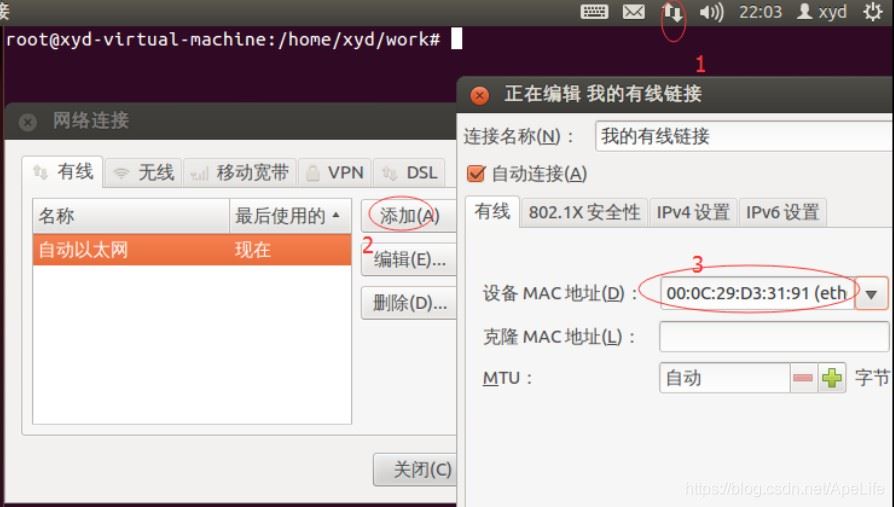 配置ubuntu,使得其能够动态获取ip地址,dns。同时使得虚拟机的ip地址与物理机的ip地址在同一个网段