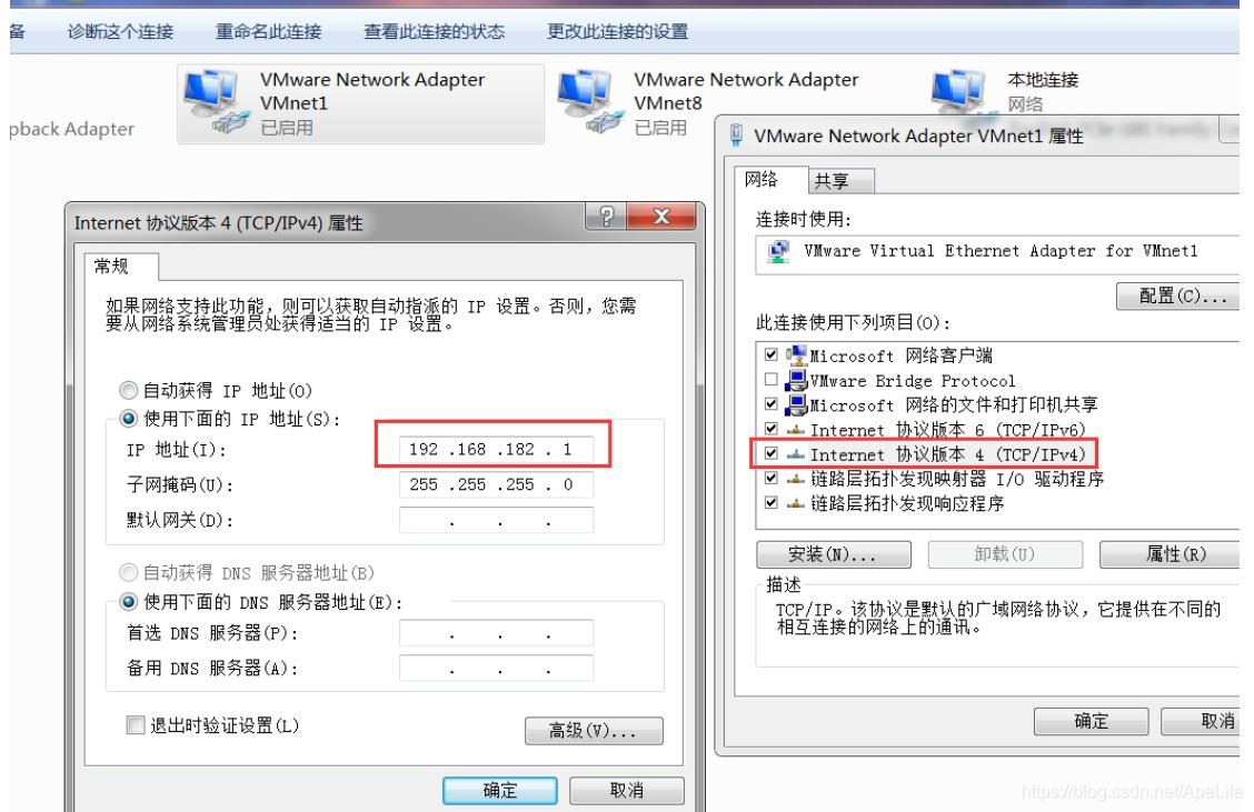 先来查看下widnows 7系统中vmnet1的信息,这个ip地址是虚拟机的网关。