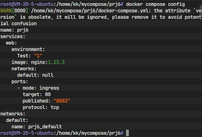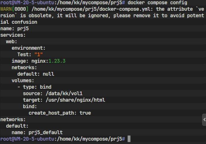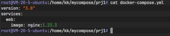 首先创建一个名为 mycompose 的目录,在其下创建子目录 prj1,并编写 docker-compose.yml: