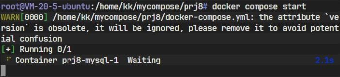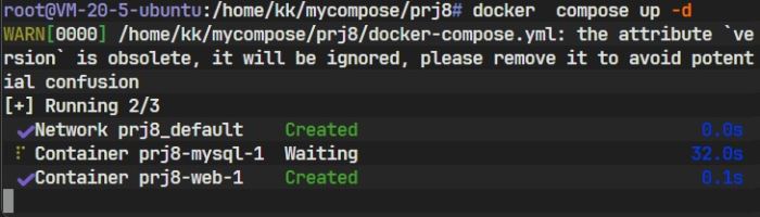 图中显示 web 服务处于 Waiting 状态,因为它在等待 mysql 完成健康检查。