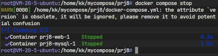 停止服务时,Compose 会遵循逆序:先停止依赖者(web),再停止被依赖者(mysql):