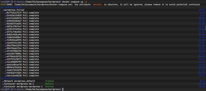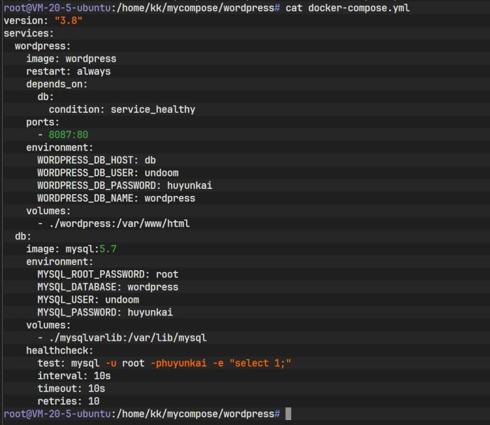 在配置文件中,将 db 服务的健康状态作为 wordpress 启动的前置条件: