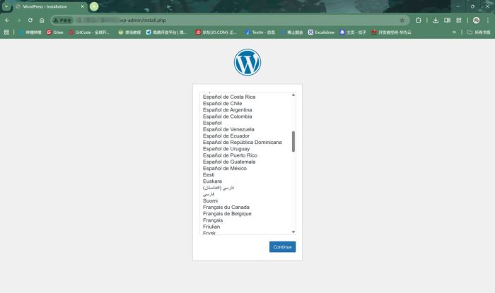 通过浏览器访问服务器端口,进入 WordPress 安装引导页面: