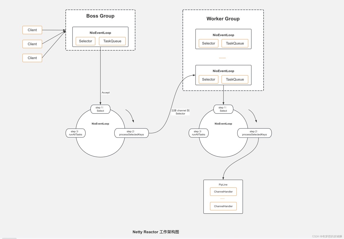 - 线程模型:Netty使用了多Reactor模型,包括一个MainReactor和多个SubReactor。MainReactor负责接收新连接,SubReactor负责处理已接受的连接。这种线程模型使得Netty能够高效地处理大量并发连接。