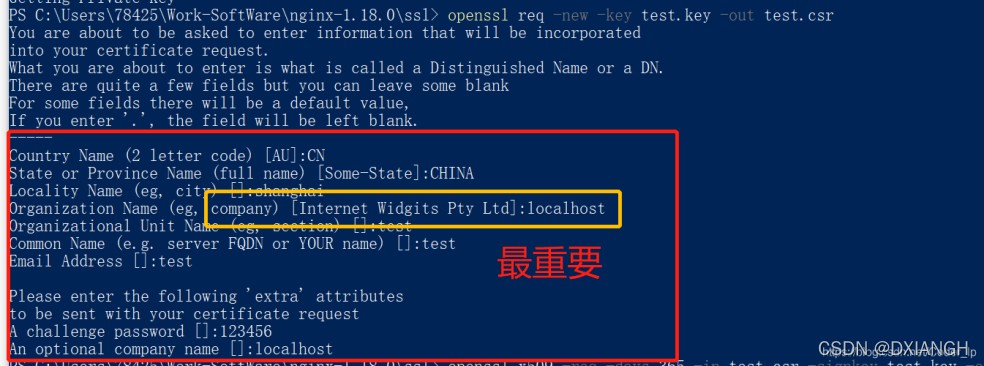 openssl req -new -key test.key -out test.csr