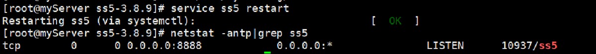 chmod u+x /etc/rc.d/init.d/ss5 chkconfig --add ss5 //可选 chkconfig ss5 on //可选 service ss5 start