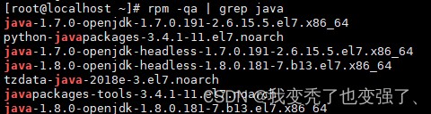 rpm -e --nodeps java-1.7.0-openjdk-1.7.0.191-2.6.15.5.el7.x86_64 rpm -e --nodeps java-1.7.0-openjdk-headless-1.7.0.191-2.6.15.5.el7.x86_64 rpm -e --nodeps java-1.8.0-openjdk-headless-1.8.0.181-7.b13.el7.x86_64 rpm -e --nodeps python-javapackages-3.4.1-11.el7.noarch rpm -e --nodeps tzdata-java-2018e-3.el7.noarch rpm -e --nodeps javapackages-tools-3.4.1-11.el7.noarch rpm -e --nodeps java-1.8.0-openjdk-1.8.0.181-7.b13.el7.x86_64