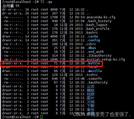 (2) 将.ketlte文件解压到Linux的root目录下,也就是~下,然后使用 ll -qa可查看