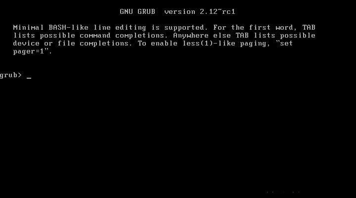 如图所示,如果您没有删除Linux的EFI引导,那么您应该连win系统都启动不了,而会进入类似于下图所示的grub命令行界面: