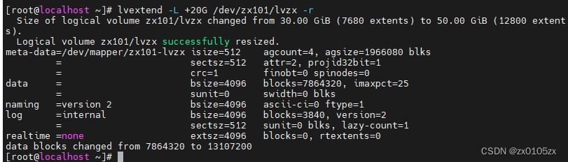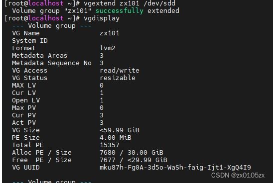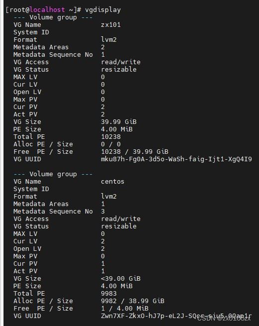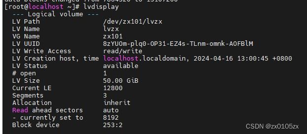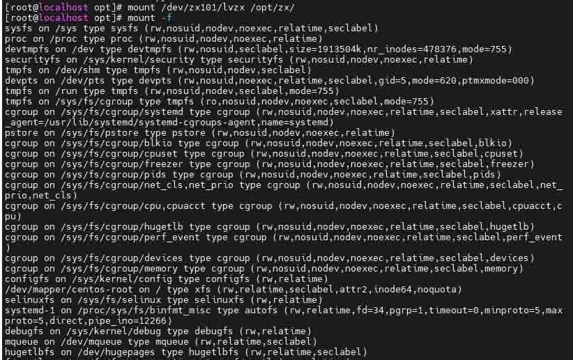 由于上一个实验我们将/dev/zx101/lvzx挂载到/opt/zx目录中,所以我们先解挂载