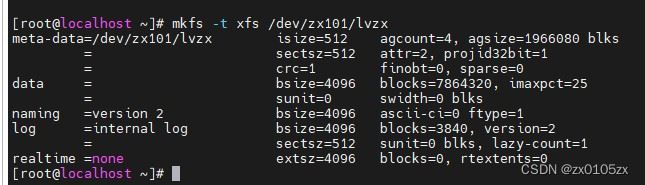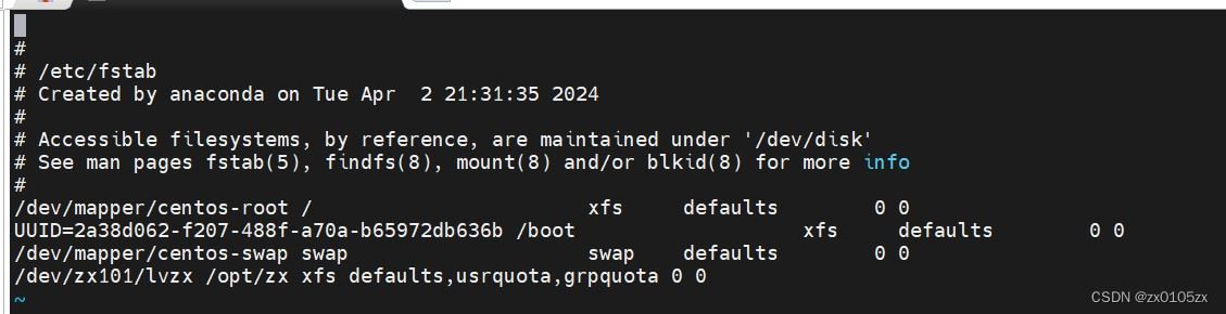 6)将逻辑卷lvzx挂载到/opt/zx下