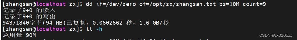 - 容量验证:dd if=/dev/zero of=挂载点目录/xx文件 bs=每次复制的数据大小 count=复制次数