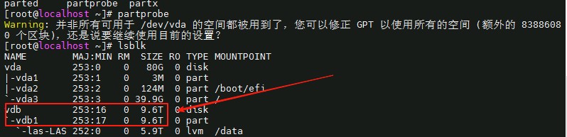 lsblk ###vdb已经从原有的5.9t扩容到了9.6