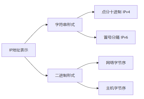 人类可读的字符串形式:如"192.168.1.1"(IPv4)或"2001:0db8:85a3::8a2e:0370:7334"(IPv4)