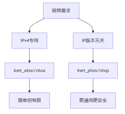 Linux提供了丰富的IP地址转换函数,选择正确的函数需要考虑: