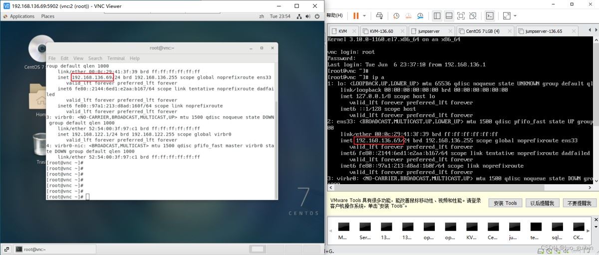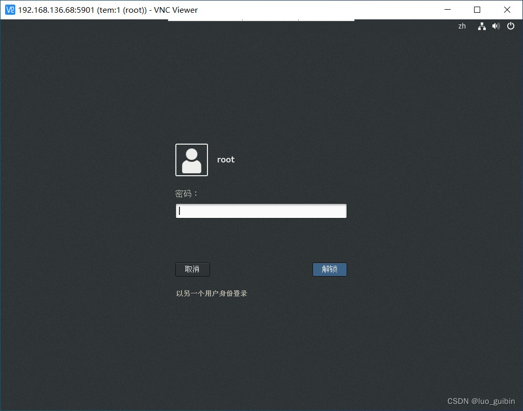 虚拟机是init3,但vnc仍然是Linux桌面版GUI,即init5,这是另一台主机192.168.136.69,VNC客户端和VNC服务端运行级别可以不同,只需要保证服务端有安装GUI即可。