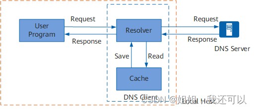 DNS客户端的作用是接收用户程序(User Program)的DNS请求,并对其作出回应。作为DNS客户端的设备上一般具备以下能力: