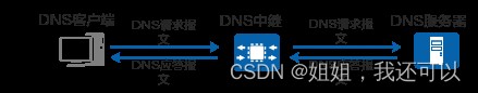 - DNS客户端将DNS请求报文发送给DNS中继,即请求报文的目的地址为DNS中继的IP地址。