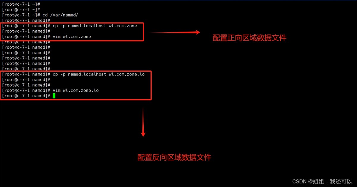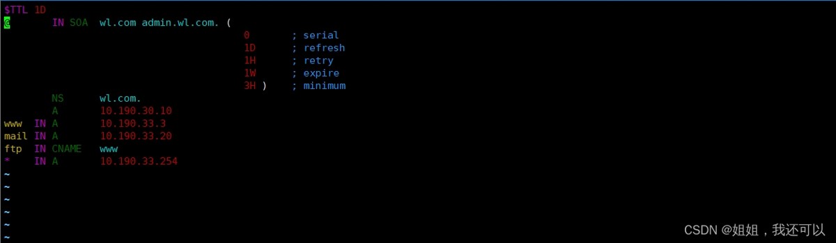 vim wl.com.zone ##修改区域数据文件“wl.com.zone”