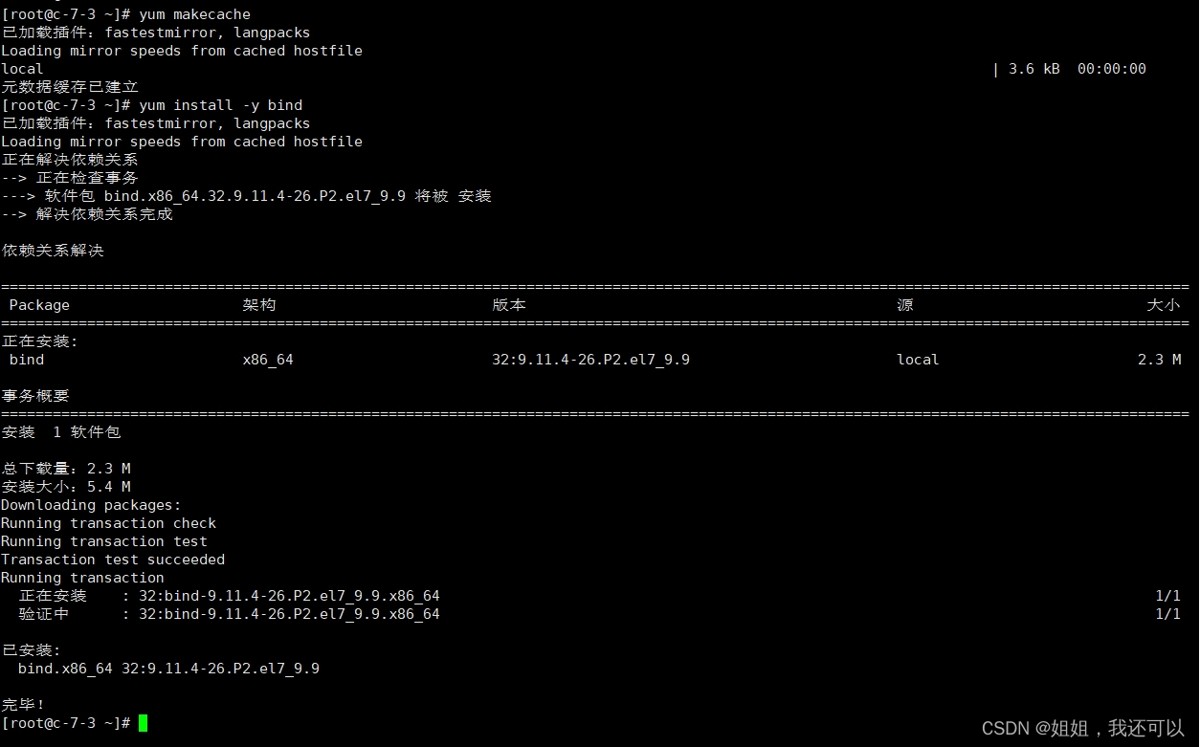 yum makecache ##检查yum仓库 yum install -y bind ##安装bind软件
