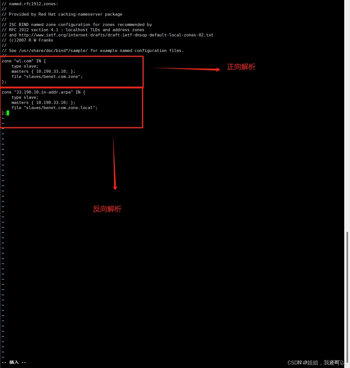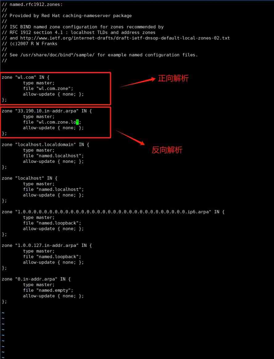vim /etc/named.rfc1912.zones ##修改区域配置文件