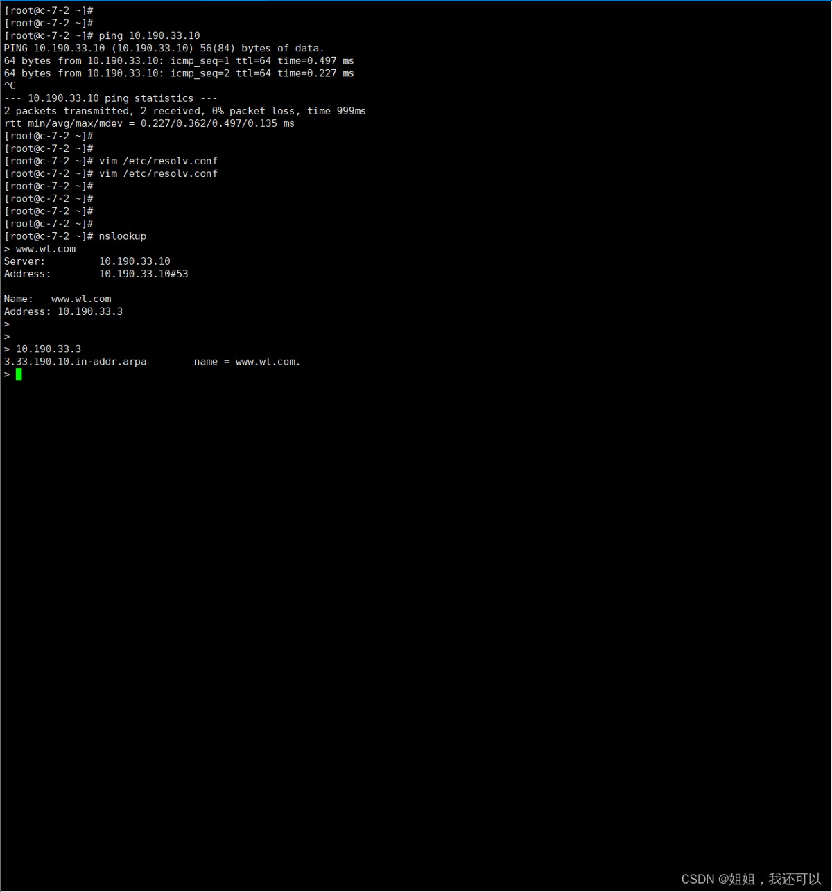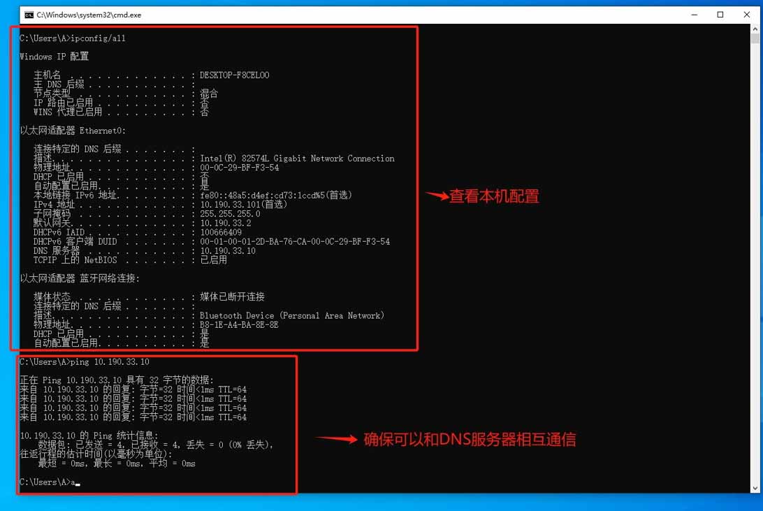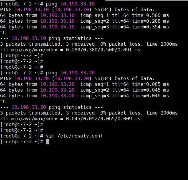 ping 10.190.33.10 ##pingDNS服务器地址,确保可以和DNS服务互相通信