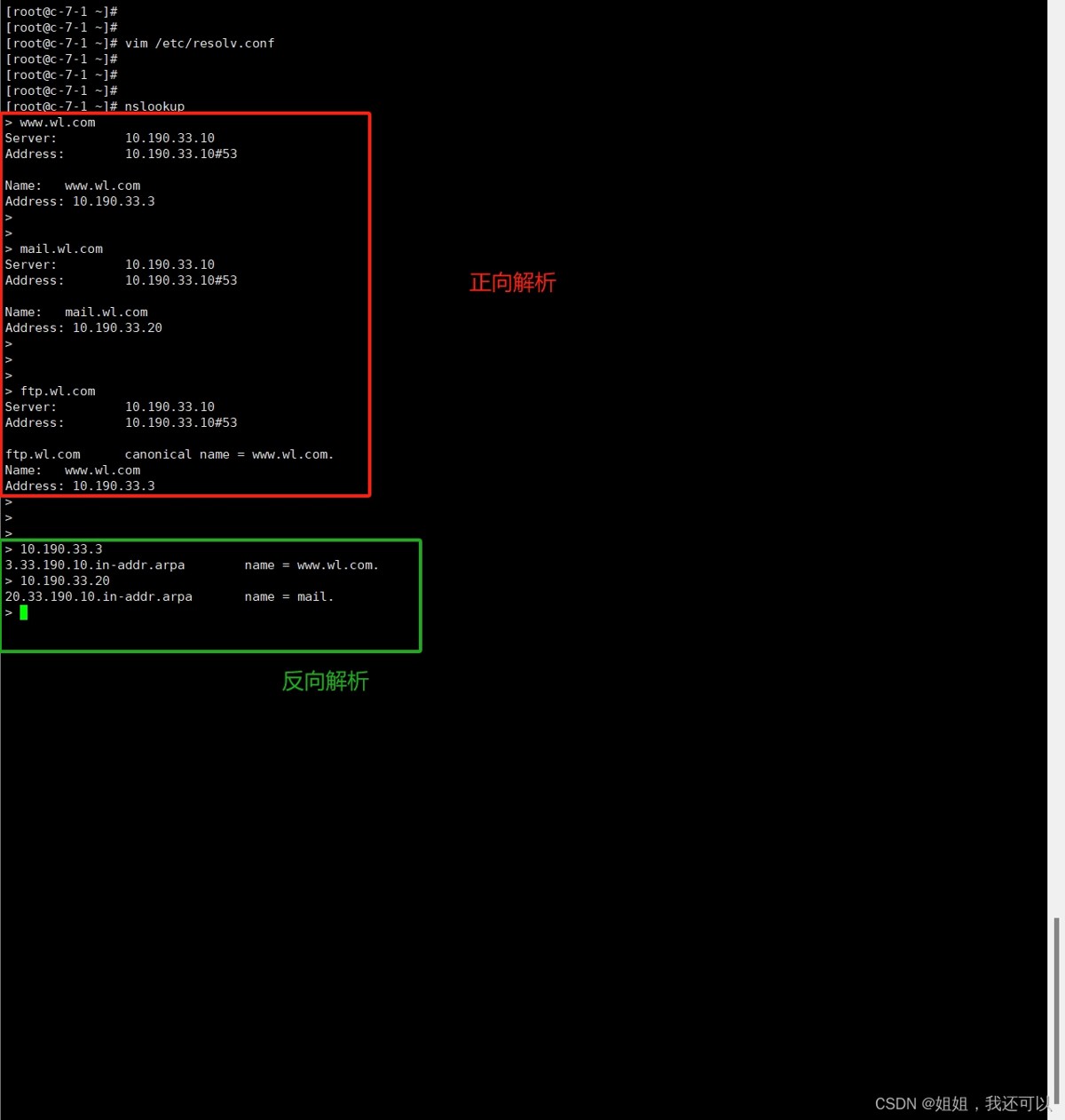 3 PTR www.wl.com. #PTR为反向指针,反向解析10.190.33.3地址结果为www.wl.com.