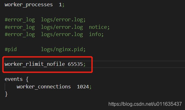 # vi nginx.conf worker_rlimit_nofile 65535;