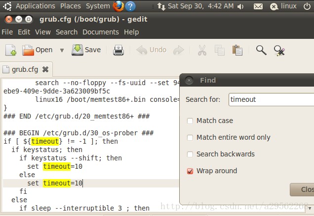 11.更改内核选择页面停留时间:还是在grub.cfg内找到所有timeout进行更改(单位为秒),if判断处不需要更改;