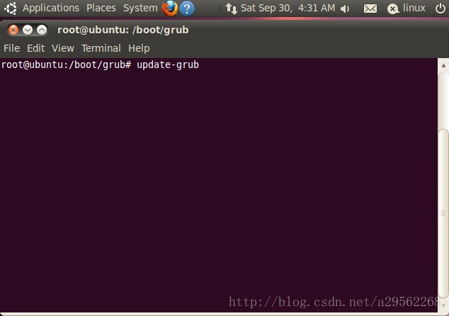 9.更改启动文件:进入/boot/grub文件夹,输入命令update-grub;