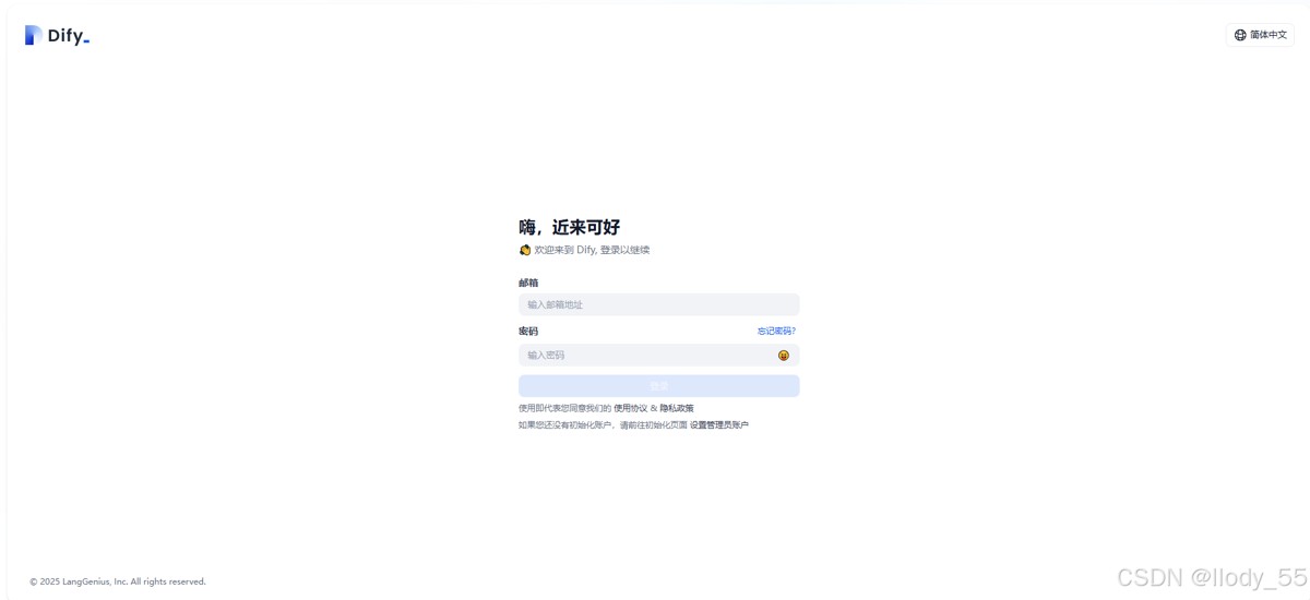 root@dify:~# docker-compose -p dify -f dify/dify.yaml up -d [+] Running 9/0 ✔ Container dify-redis-1 Running 0.0s ✔ Container dify-weaviate-1 Running 0.0s ✔ Container dify-ssrf_proxy-1 Running 0.0s ✔ Container dify-web-1 Running 0.0s ✔ Container dify-db-1 Running 0.0s ✔ Container dify-worker-1 Running 0.0s ✔ Container dify-sandbox-1 Running 0.0s ✔ Container dify-api-1 Running 0.0s ✔ Container dify-nginx-1 Running 0.0s