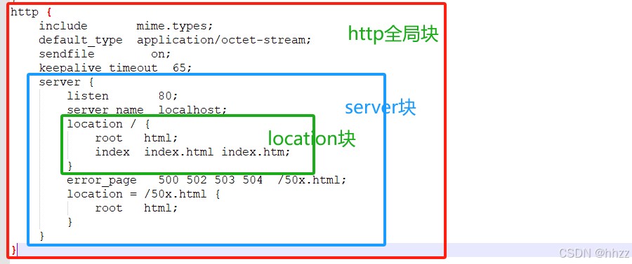 需要注意的是:http 块也可以包括 http全局块、server 块。
